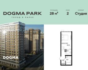 В продаже квартира-студия от застройщика! Мкр. "DOGMA PARK" г. Краснодар, Литер 34 Срок сдачи: 4 кв. 2027, общей площадью 28 кв.м., на 2 этаже.