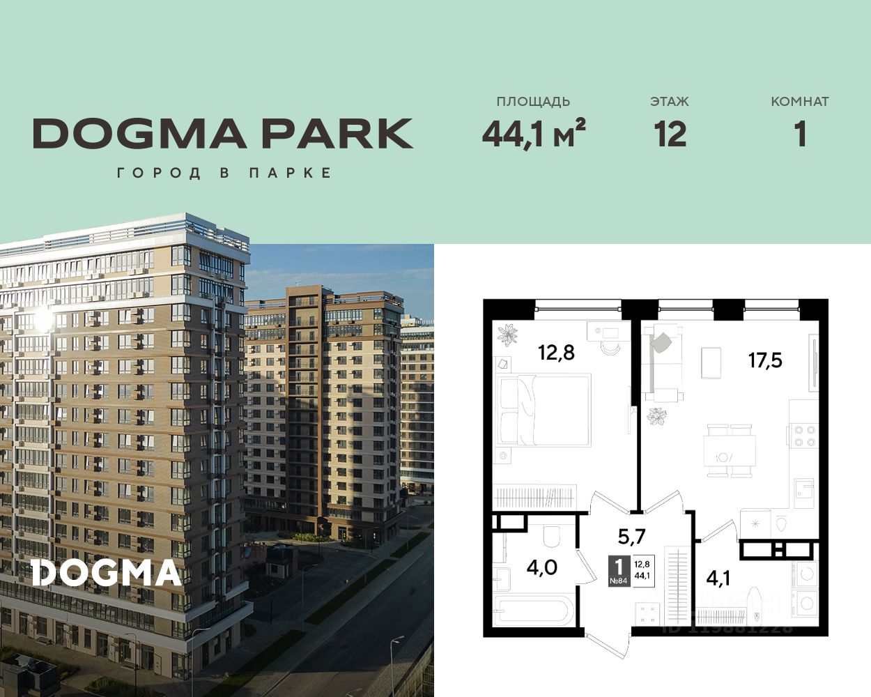 В продаже 1-комнатная квартира от застройщика! Мкр. "DOGMA PARK" г. Краснодар, Литер 36 Срок сдачи: 4 кв. 2027, общей площадью 44.1 кв.м., на 12 этаже.