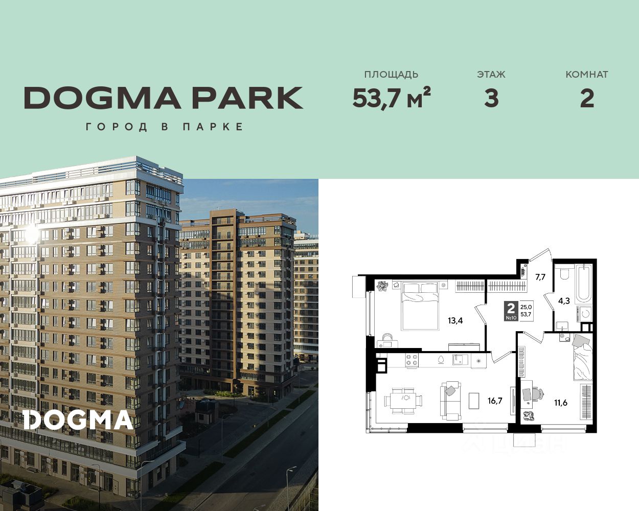 В продаже 2-комнатная квартира от застройщика! Мкр. "DOGMA PARK" г. Краснодар, Литер 36 Срок сдачи: 4 кв. 2027, общей площадью 53.7 кв.м., на 3 этаже.