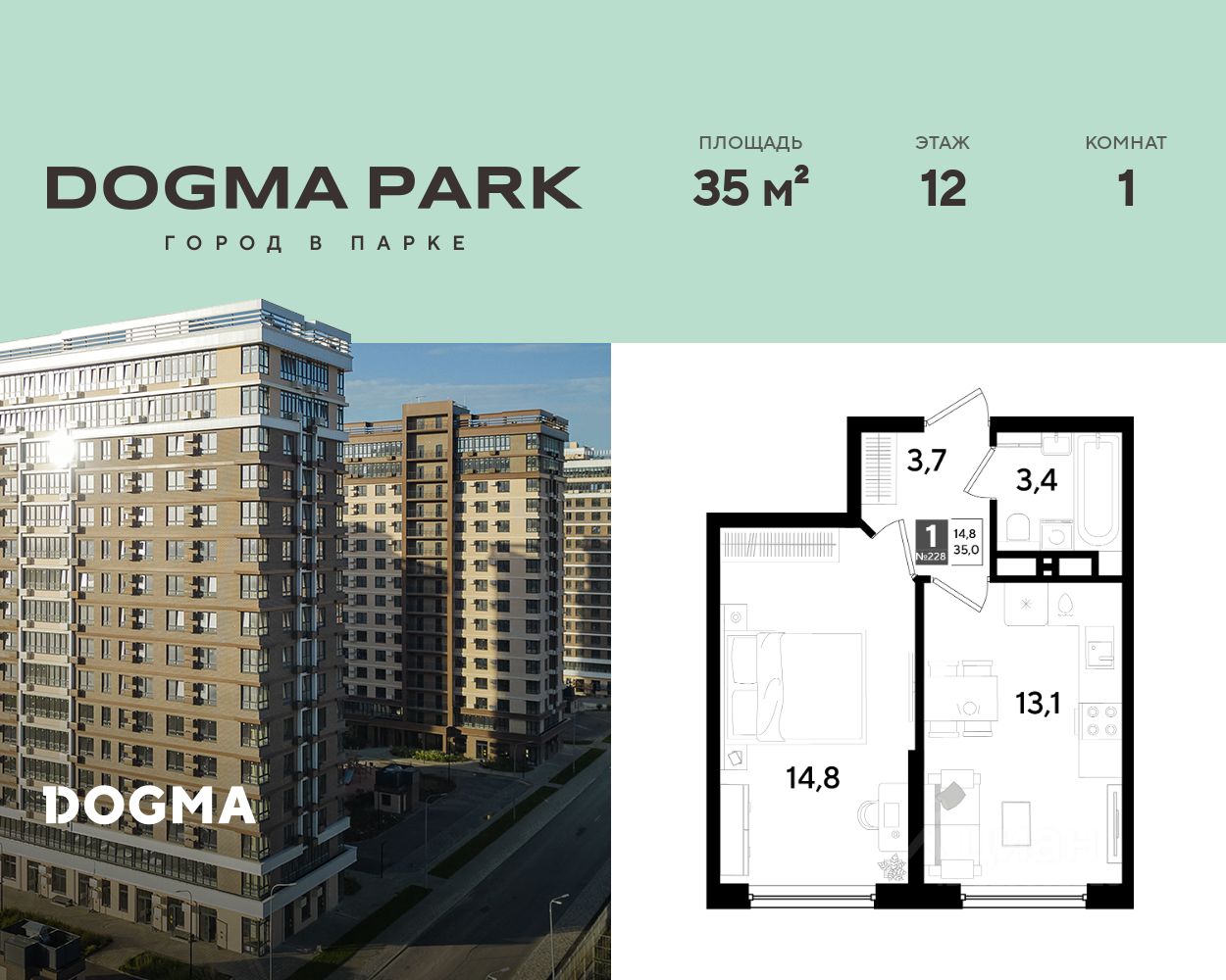 В продаже 1-комнатная квартира от застройщика! Мкр. "DOGMA PARK" г. Краснодар, Литер 36 Срок сдачи: 4 кв. 2027, общей площадью 35 кв.м., на 12 этаже.