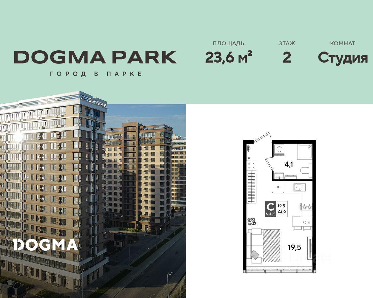 В продаже квартира-студия от застройщика! Мкр. "DOGMA PARK" г. Краснодар, Литер 36 Срок сдачи: 4 кв. 2027, общей площадью 23.6 кв.м., на 2 этаже.