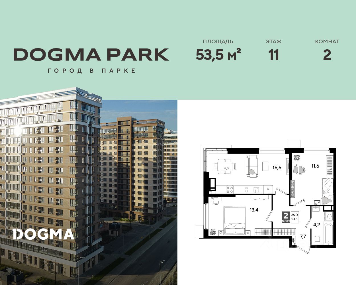 В продаже 2-комнатная квартира от застройщика! Мкр. "DOGMA PARK" г. Краснодар, Литер 36 Срок сдачи: 4 кв. 2027, общей площадью 53.5 кв.м., на 11 этаже.