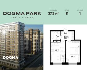В продаже 1-комнатная квартира от застройщика! Мкр. "DOGMA PARK" г. Краснодар, Литер 30 Срок сдачи: 3 кв. 2027, общей площадью 37.3 кв.м., на 11 этаже.