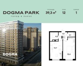В продаже 1-комнатная квартира от застройщика! Мкр. "DOGMA PARK" г. Краснодар, Литер 30 Срок сдачи: 3 кв. 2027, общей площадью 39.3 кв.м., на 12 этаже.