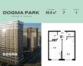 В продаже 1-комнатная квартира от застройщика! Мкр. "DOGMA PARK" г. Краснодар, Литер 30 Срок сдачи: 3 кв. 2027, общей площадью 39.5 кв.м., на 7 этаже.