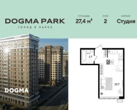 В продаже квартира-студия от застройщика! Мкр. "DOGMA PARK" г. Краснодар, Литер 30 Срок сдачи: 3 кв. 2027, общей площадью 27.4 кв.м., на 2 этаже.