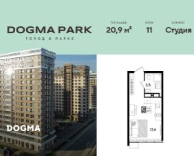 В продаже квартира-студия от застройщика! Мкр. "DOGMA PARK" г. Краснодар, Литер 32 Срок сдачи: 3 кв. 2027, общей площадью 20.9 кв.м., на 11 этаже.