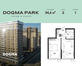 В продаже 1-комнатная квартира от застройщика! Мкр. "DOGMA PARK" г. Краснодар, Литер 32 Срок сдачи: 3 кв. 2027, общей площадью 34.6 кв.м., на 2 этаже.