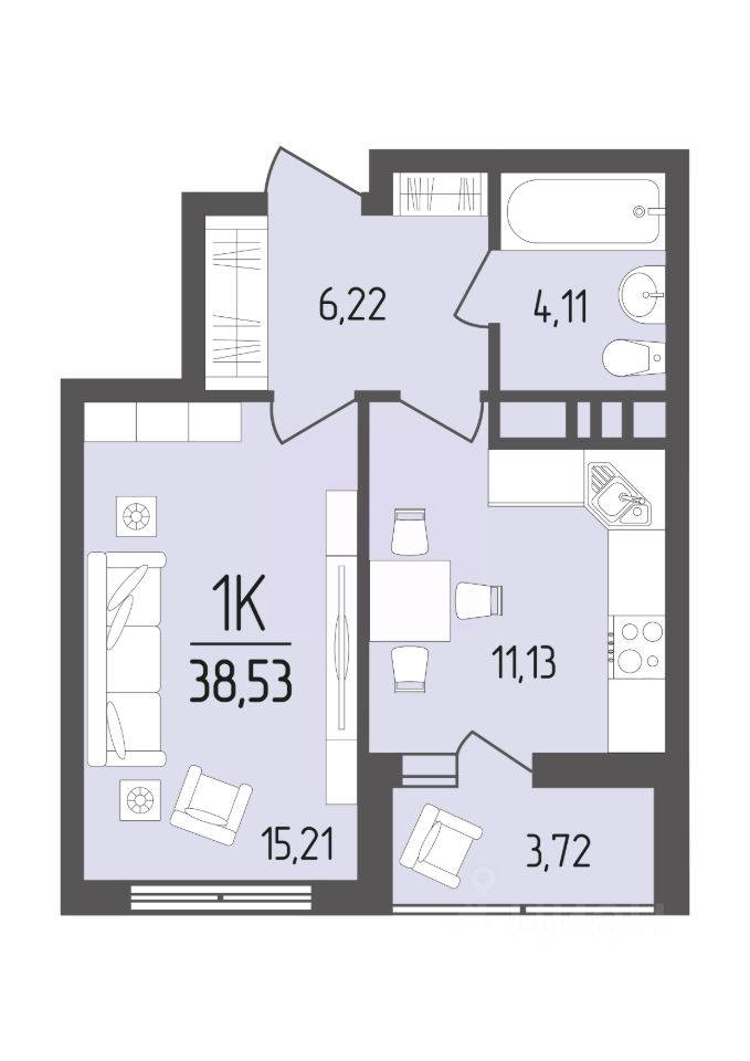 Общая площадь38,53 м²