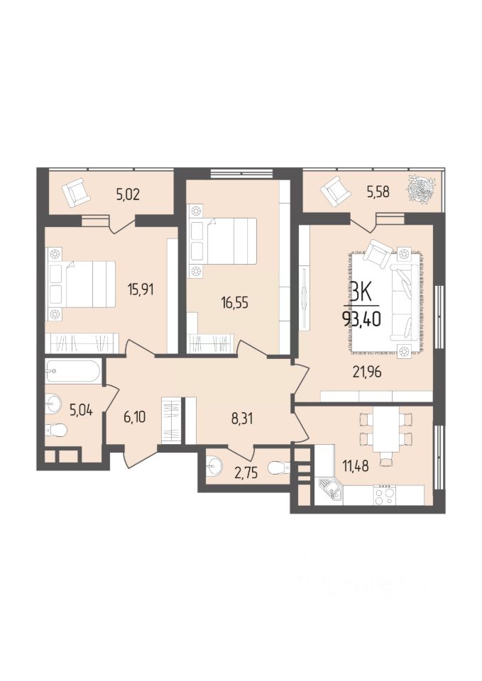Общая площадь93,4 м²