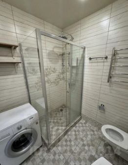 В ванной комнате установлена душевая кабина, а стиральная машина поможет быстро справляться с домашними делами.