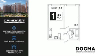 DOGMA - ТОП-3 застройщик по объему строительства в РФ. "САМОЛЁТ" — концептуальный жилой микрорайон, который расположен на северо-западе Краснодара, в районе Западного Обхода. Квартал спроектирован как "город в городе", поэтому здесь будет всё для комфортной жизни: современные дома с разными планировками, дороги, школы и детские сады, поликлиника, торговые центры, парки и аллеи. Микрорайон находится далеко от промышленных предприятий, сочетает удобство городской жизни и экологически благоприятную среду. Инфраструктура нового микрорайона: • 4 школы и 9 детских садов на территории микрорайона • Функциональные планировки • Собственный бульвар протяжённостью 1,6км • Светомузыкальный фонтан протяжённостью 55 метров • Амфитеатр • Парк 7 ГА • Скейт-парк • Детская аква-площадка • Круглосуточное видеонаблюдение и пост охраны Приобрести квартиру можно одним из способов: ипотека, рассрочка, наличный расчет.