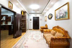 Планировочное решение этой прекрасной квартиры тоже уникально. По первоначальному проекту приобреталась полноценная и просторная четырехкомнатная квартира. В последующем было принято решение о совмещении кухни-столовой с гостиной. Данное перепланировочное решение узаконено и позволило по максимуму использовать высвободившиеся квадратные метры.