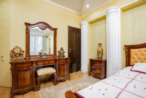 Мебель везде изготовлена и установлена по индивидуальному заказу из массива. Тяжелая и добротная. Сейчас такую из-за ограничений трубно и довольно-таки дорого купить.