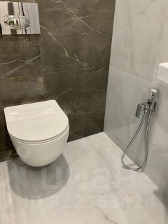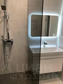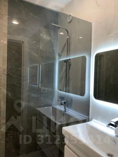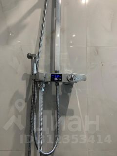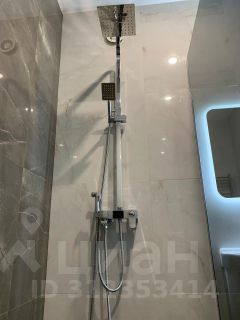 В ванной комнате широкоформатный керамогранит , тропическая душевая система с терморегулятором.