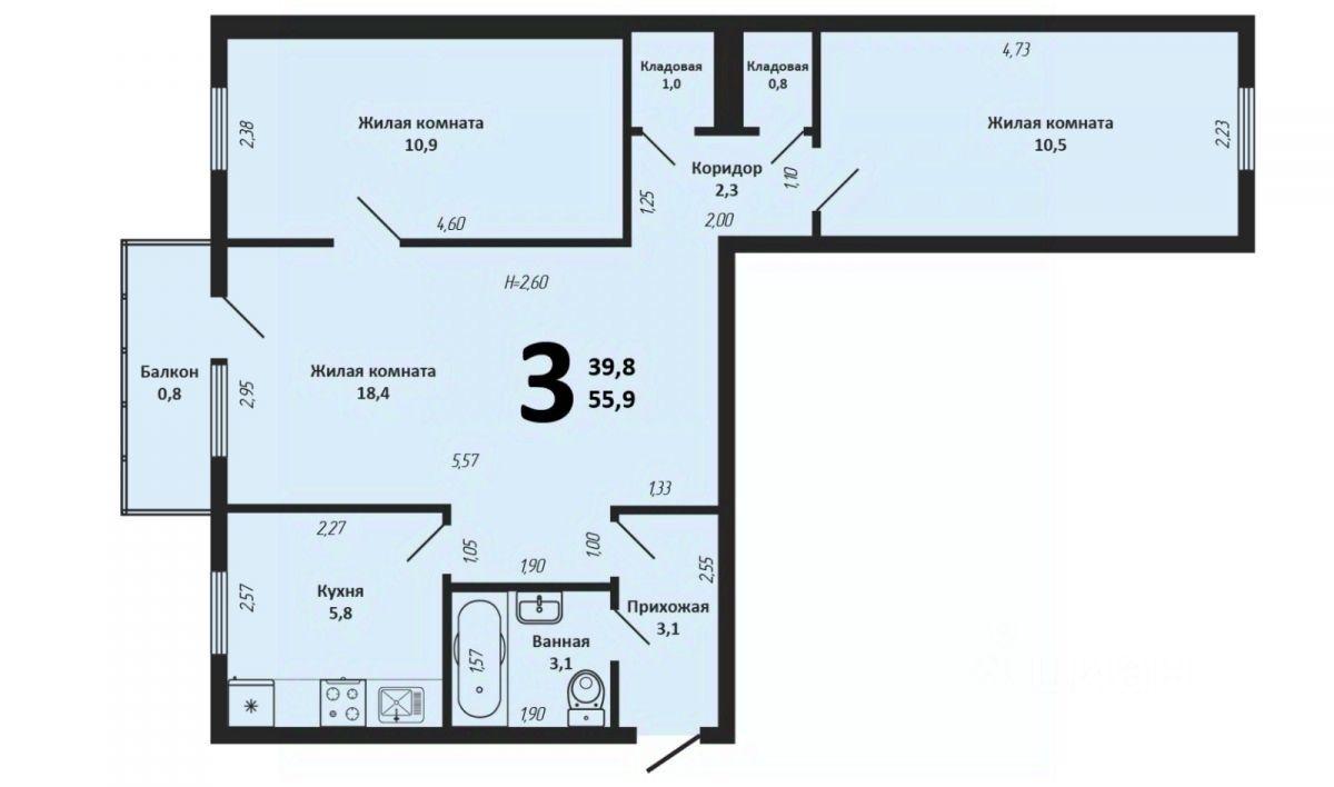 Продаю 3-х комнатную квартиру от собственника площадью 55,9 кв. м на 3 этаже 3 этажного кирпичного дома в центре Краснодара. В квартире сделан косметический ремонт, кафель в санузле, душевая кабина, окна метало-пластик. В квартире также две небольшие кладовые, санузел совмещен, все коммуникации центральные. Кухня не большой площадью, но легко можно расширить соединив с гостиной.