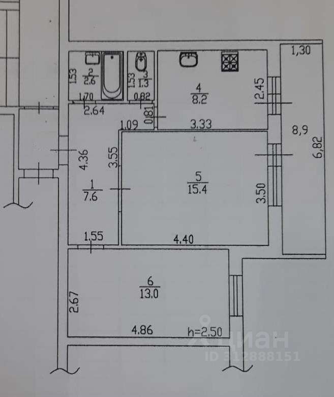 Квартира общей площадью 51,66 кв.м типовой планировки: просторная прихожая, две изолированные комнаты, кухня 8,2 кв.м, раздельный санузел, лоджия.