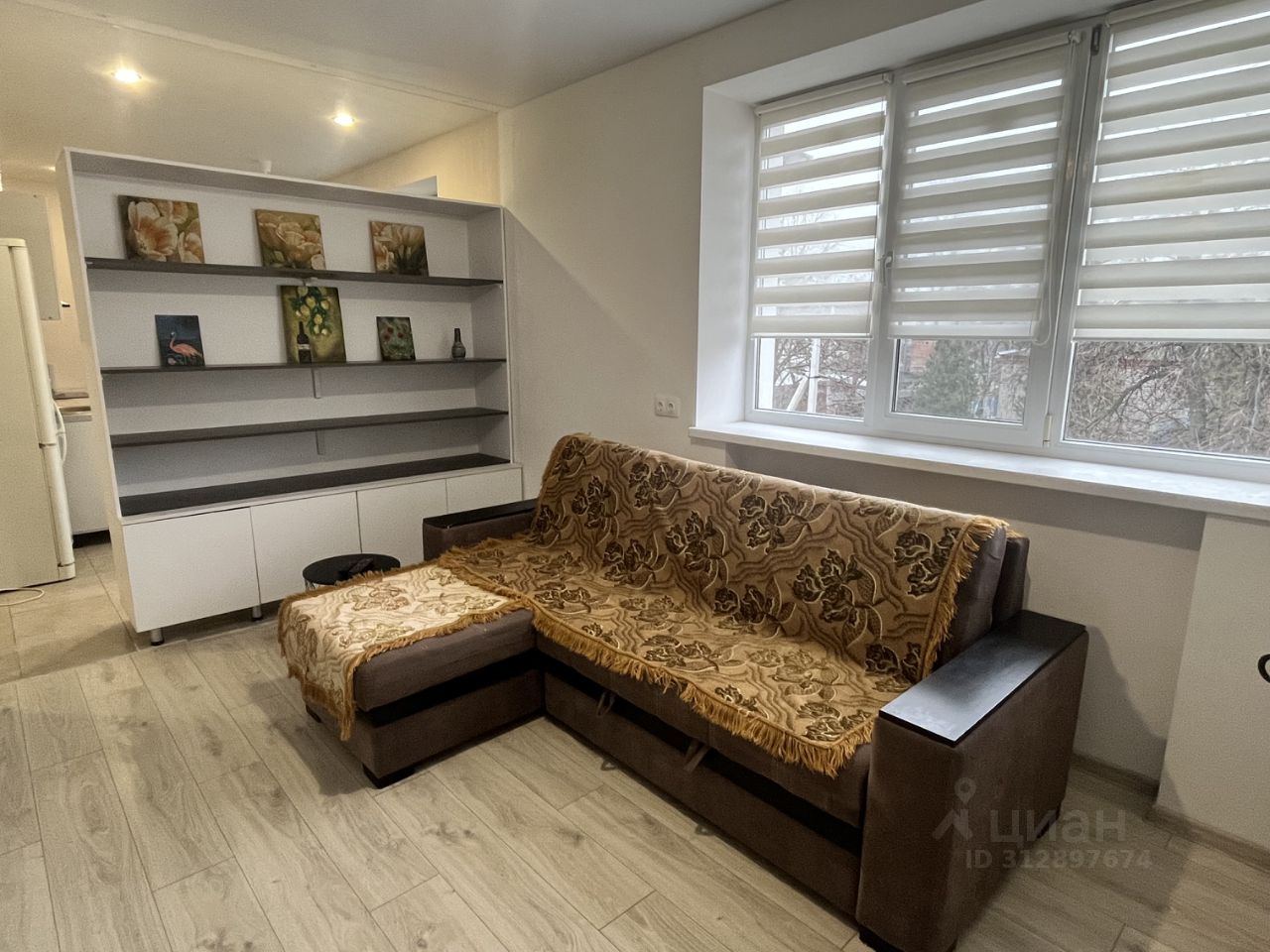 Одна комната изолированная, с дверью. Другая комната отделена закрытым стеллажом 2м*2м от кухонной зоны.