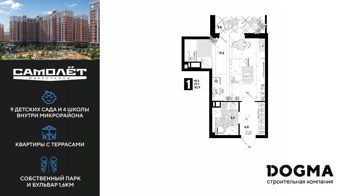 В продаже квартира-студия от застройщика! Мкр. "Самолет" 5 очередь, г. Краснодар, Литер 28 Срок сдачи: 2 кв. 2024, общей площадью 30.9 кв.м., на 3 этаже.