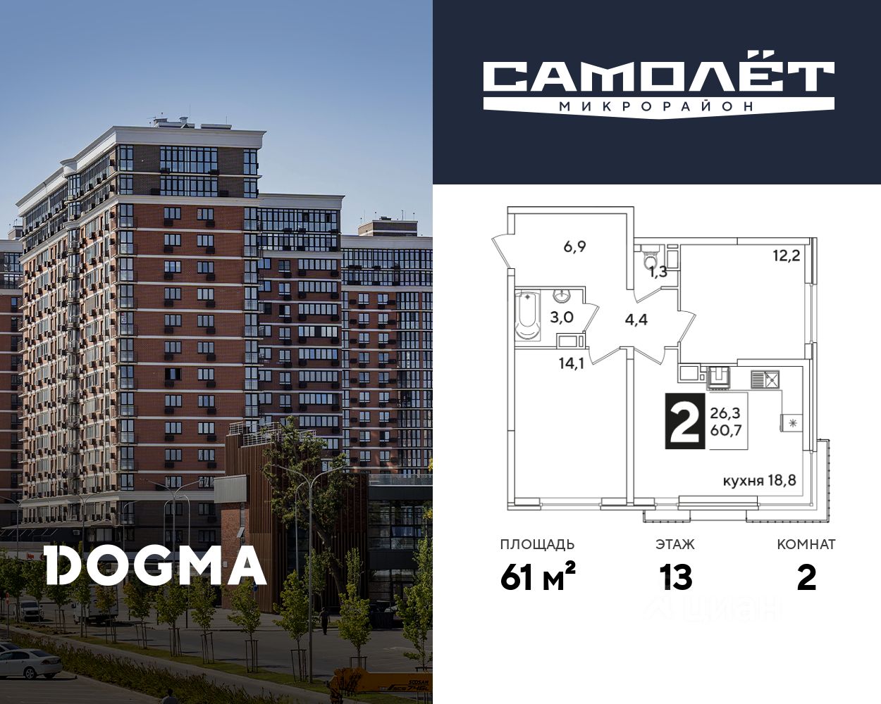 DOGMA - ТОП-3 застройщик по объему строительства в РФ. "САМОЛЁТ" — концептуальный жилой микрорайон, который расположен на северо-западе Краснодара, в районе Западного Обхода. Квартал спроектирован как "город в городе", поэтому здесь будет всё для комфортной жизни: современные дома с разными планировками, дороги, школы и детские сады, поликлиника, торговые центры, парки и аллеи. Микрорайон находится далеко от промышленных предприятий, сочетает удобство городской жизни и экологически благоприятную среду. Инфраструктура нового микрорайона: • 4 школы и 9 детских садов на территории микрорайона • Функциональные планировки • Собственный бульвар протяжённостью 1,6км • Светомузыкальный фонтан протяжённостью 55 метров • Амфитеатр • Парк 7 ГА • Скейт-парк • Детская аква-площадка • Круглосуточное видеонаблюдение и пост охраны Приобрести квартиру можно одним из способов: ипотека, рассрочка, наличный расчет.
