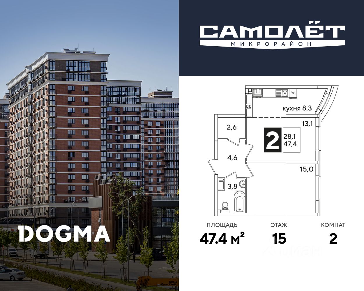 DOGMA - ТОП-3 застройщик по объему строительства в РФ. "САМОЛЁТ" — концептуальный жилой микрорайон, который расположен на северо-западе Краснодара, в районе Западного Обхода. Квартал спроектирован как "город в городе", поэтому здесь будет всё для комфортной жизни: современные дома с разными планировками, дороги, школы и детские сады, поликлиника, торговые центры, парки и аллеи. Микрорайон находится далеко от промышленных предприятий, сочетает удобство городской жизни и экологически благоприятную среду. Инфраструктура нового микрорайона: • 4 школы и 9 детских садов на территории микрорайона • Функциональные планировки • Собственный бульвар протяжённостью 1,6км • Светомузыкальный фонтан протяжённостью 55 метров • Амфитеатр • Парк 7 ГА • Скейт-парк • Детская аква-площадка • Круглосуточное видеонаблюдение и пост охраны Приобрести квартиру можно одним из способов: ипотека, рассрочка, наличный расчет.