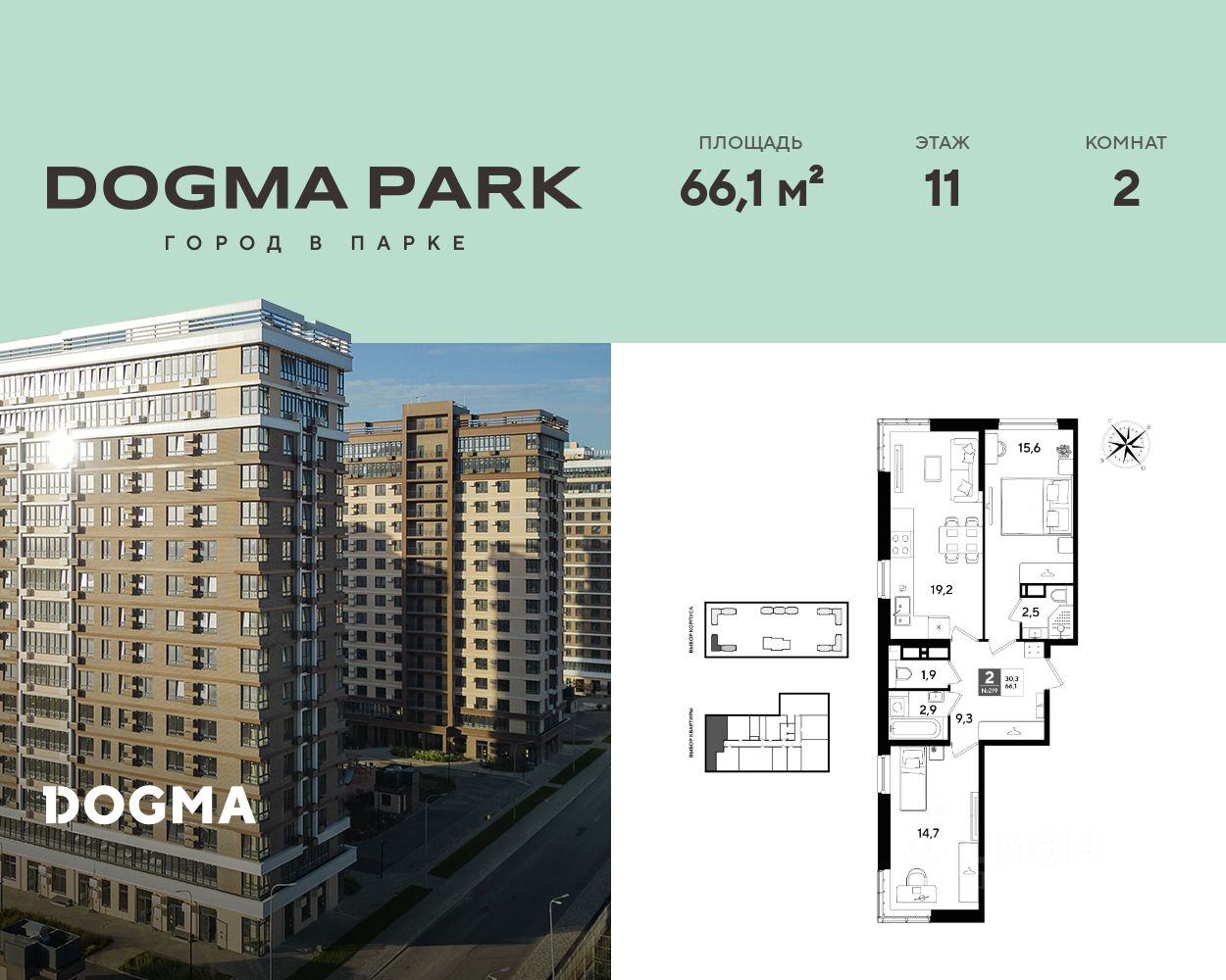 В продаже 2-комнатная квартира от застройщика! Мкр. "DOGMA PARK" г. Краснодар, Литер 25 Срок сдачи: 4 кв. 2027, общей площадью 66.1 кв.м., на 11 этаже.