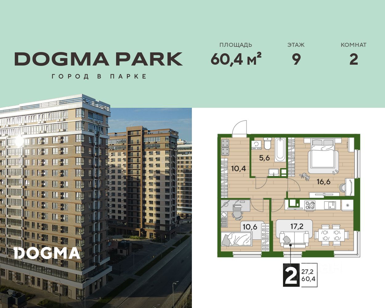 В продаже 2-комнатная квартира от застройщика! Мкр. "DOGMA PARK" г. Краснодар, Литер 24 Срок сдачи: 4 кв. 2027, общей площадью 60.4 кв.м., на 9 этаже.