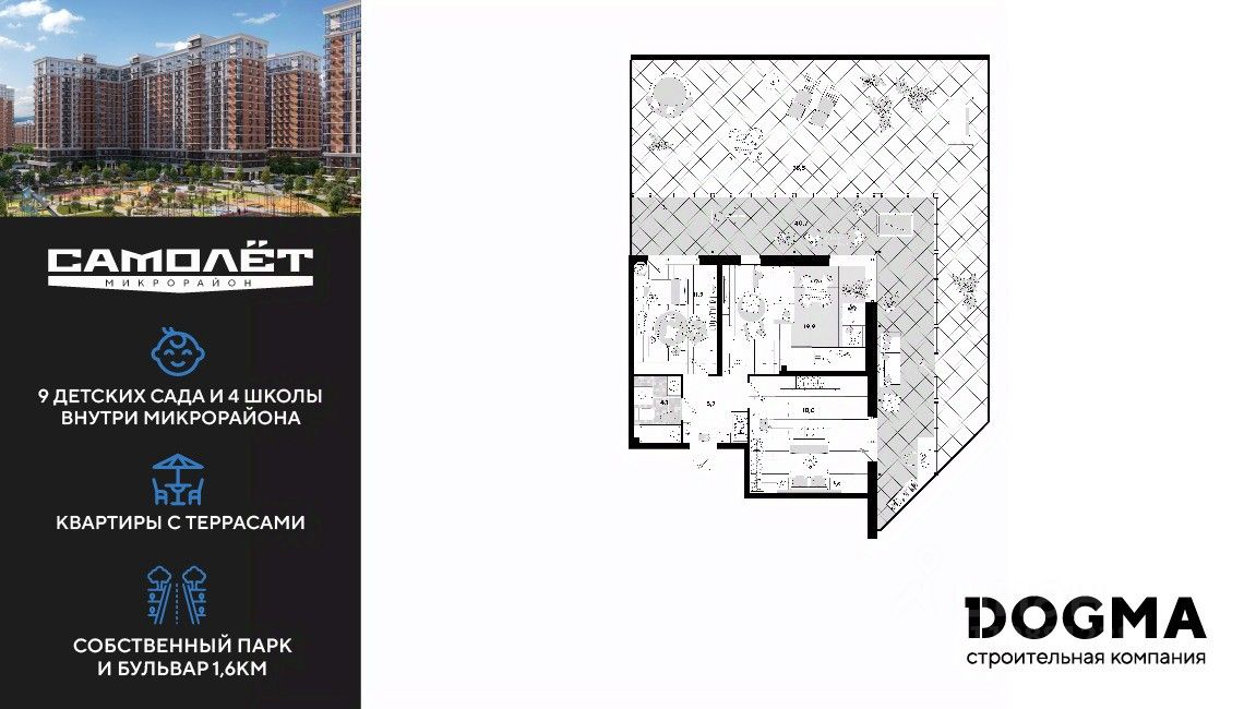 "САМОЛЁТ" — концептуальный жилой микрорайон, который расположен на северо-западе Краснодара, в районе Западного Обхода. Квартал спроектирован как "город в городе", поэтому здесь будет всё для комфортной жизни: современные дома с разными планировками, дороги, школы и детские сады, поликлиника, торговые центры, парки и аллеи. Микрорайон находится далеко от промышленных предприятий, сочетает удобство городской жизни и экологически благоприятную среду.