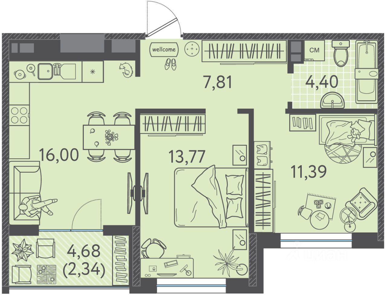 Общая площадь55,1 м²