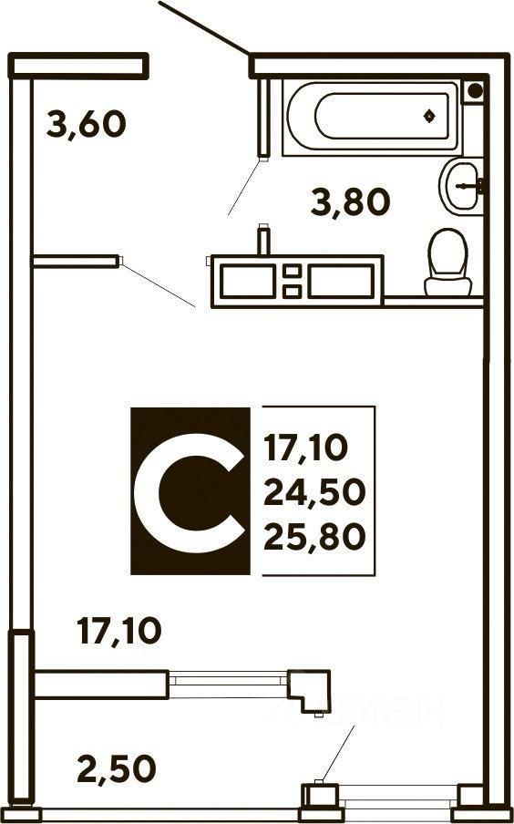 Квартира без ремонта, что позволяет вам воплотить все свои дизайнерские идеи и создать интерьер под себя. В студии есть отдельный санузел, что удобно для повседневного использования. Планировка позволяет максимально эффективно использовать пространство.