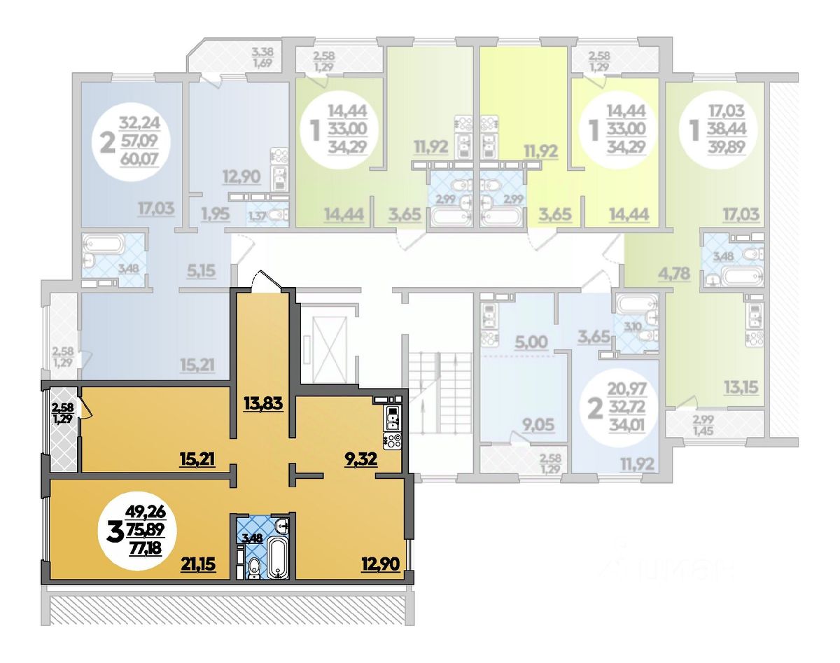 Продаётся 3-комнатная квартира в сданном доме (Литер 12), срок сдачи: IV-кв. 2024, общей площадью 77.18 кв.м., на 4 этаже. РАСПОЛОЖЕНИЕ