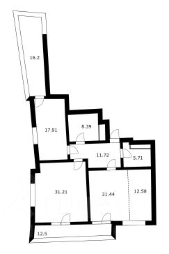 Все комнаты изолированные: кухня, гостиная, 2 спальни, 2 санузла.