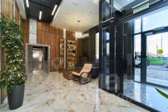 Стильное современное оформление подъезда с диваном, зоной ожидания и библиотекой для гостей, круглосуточно консьерж, бесшумные скоростные лифты.