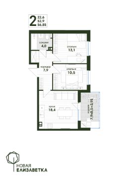 Продаётся 2-комнатная квартира в сданном доме (Дом 1 литер 3), срок сдачи: IV-кв. 2024, общей площадью 56.85 кв.м., на 4 этаже. Уникальный зелёный оазис тишины и спокойствия "Новая Елизаветка" в пригороде Краснодара.
