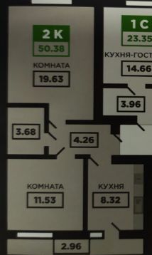 ремонт сделан в коридоре 4.26кв и в комнате 19.63