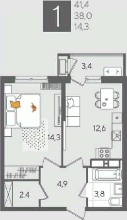 В продаже 1-комнатная квартира от застройщика! ЖК "Рекорд", г. Краснодар, Литер 5, общей площадью 41.4 кв.м., на 15 этаже.