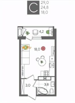 В продаже студия от застройщика! ЖК "Рекорд", г. Краснодар, Литер 5, общей площадью 29 кв.м., на 15 этаже.