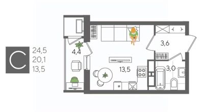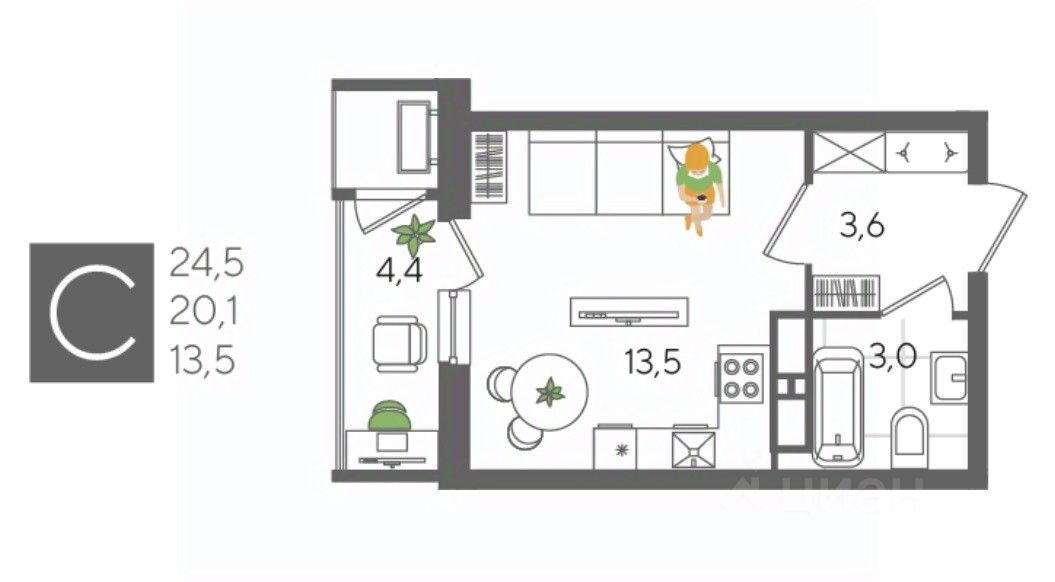 В продаже студия от застройщика! ЖК "Рекорд", г. Краснодар, Литер 5, общей площадью 24.5 кв.м., на 24 этаже.