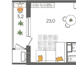 В продаже студия от застройщика! ЖК "Рекорд", г. Краснодар, Литер 5, общей площадью 31.9 кв.м., на 23 этаже.