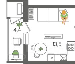 В продаже студия от застройщика! ЖК "Рекорд", г. Краснодар, Литер 5, общей площадью 24.5 кв.м., на 22 этаже.