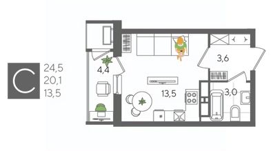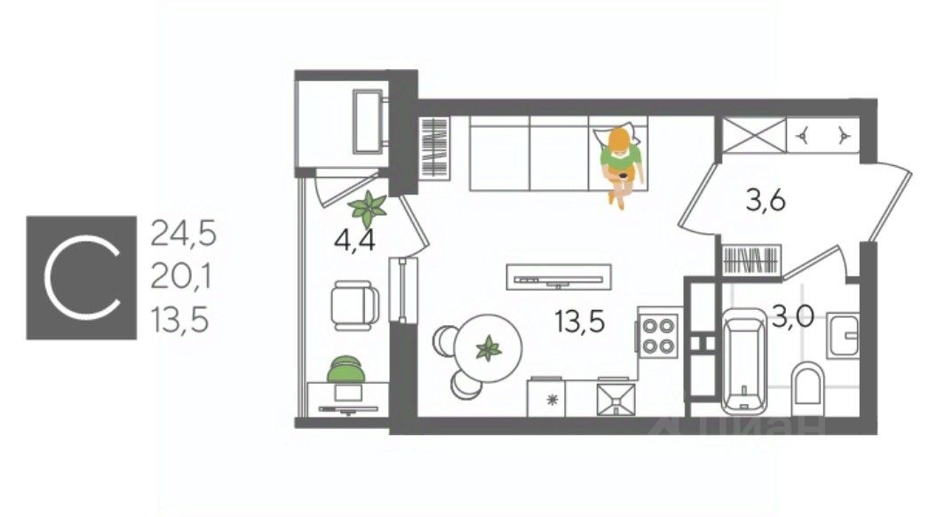 В продаже студия от застройщика! ЖК "Рекорд", г. Краснодар, Литер 5, общей площадью 24.5 кв.м., на 18 этаже.