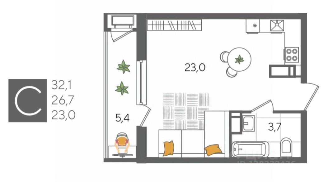 В продаже студия от застройщика! ЖК "Рекорд", г. Краснодар, Литер 5, общей площадью 32.1 кв.м., на 18 этаже.