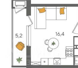 В продаже студия от застройщика! ЖК "Рекорд", г. Краснодар, Литер 5, общей площадью 29.7 кв.м., на 16 этаже.