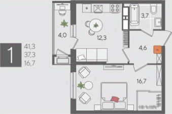 В продаже 1-комнатная квартира от застройщика! ЖК "Рекорд", г. Краснодар, Литер 5, общей площадью 41.3 кв.м., на 14 этаже.