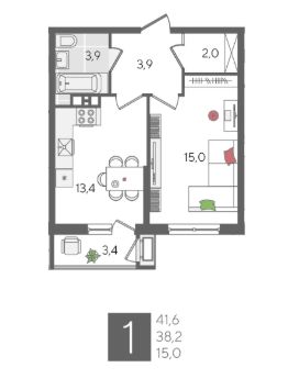 В продаже 1-комнатная квартира от застройщика! ЖК "Рекорд", г. Краснодар, Литер 5, общей площадью 41.6 кв.м., на 14 этаже.