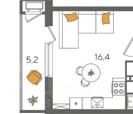 В продаже студия от застройщика! ЖК "Рекорд", г. Краснодар, Литер 5, общей площадью 29.7 кв.м., на 13 этаже.