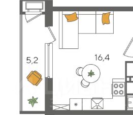 В продаже студия от застройщика! ЖК "Рекорд", г. Краснодар, Литер 5, общей площадью 29.7 кв.м., на 11 этаже.
