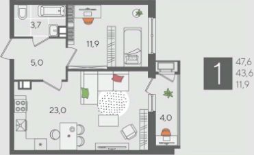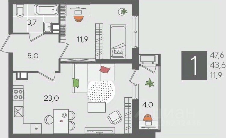 В продаже 1-комнатная квартира от застройщика! ЖК "Рекорд", г. Краснодар, Литер 5, общей площадью 47.6 кв.м., на 9 этаже.