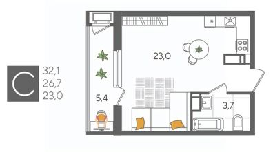 В продаже студия от застройщика! ЖК "Рекорд", г. Краснодар, Литер 5, общей площадью 32.1 кв.м., на 15 этаже.