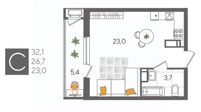 В продаже студия от застройщика! ЖК "Рекорд", г. Краснодар, Литер 5, общей площадью 32.1 кв.м., на 14 этаже.
